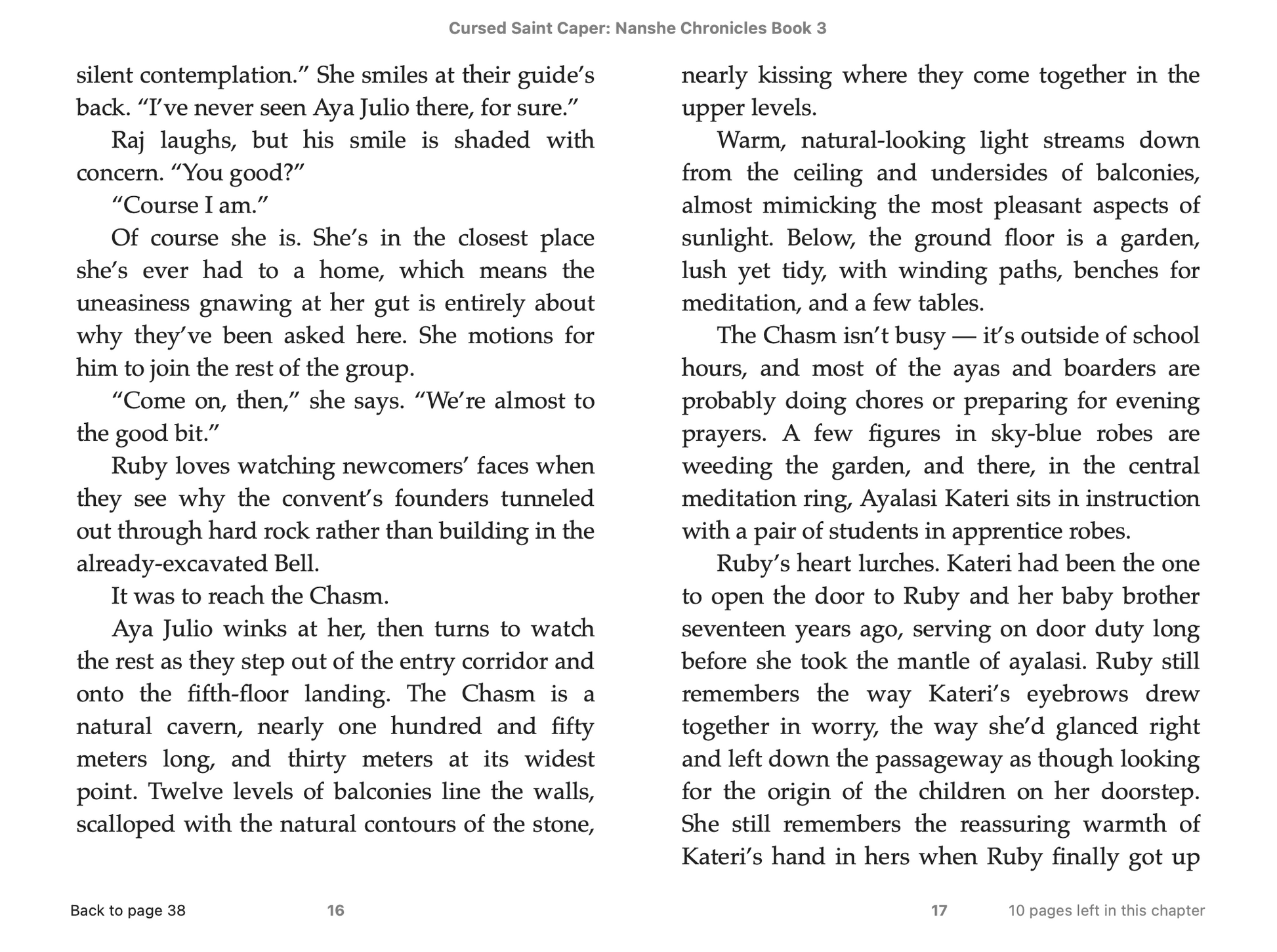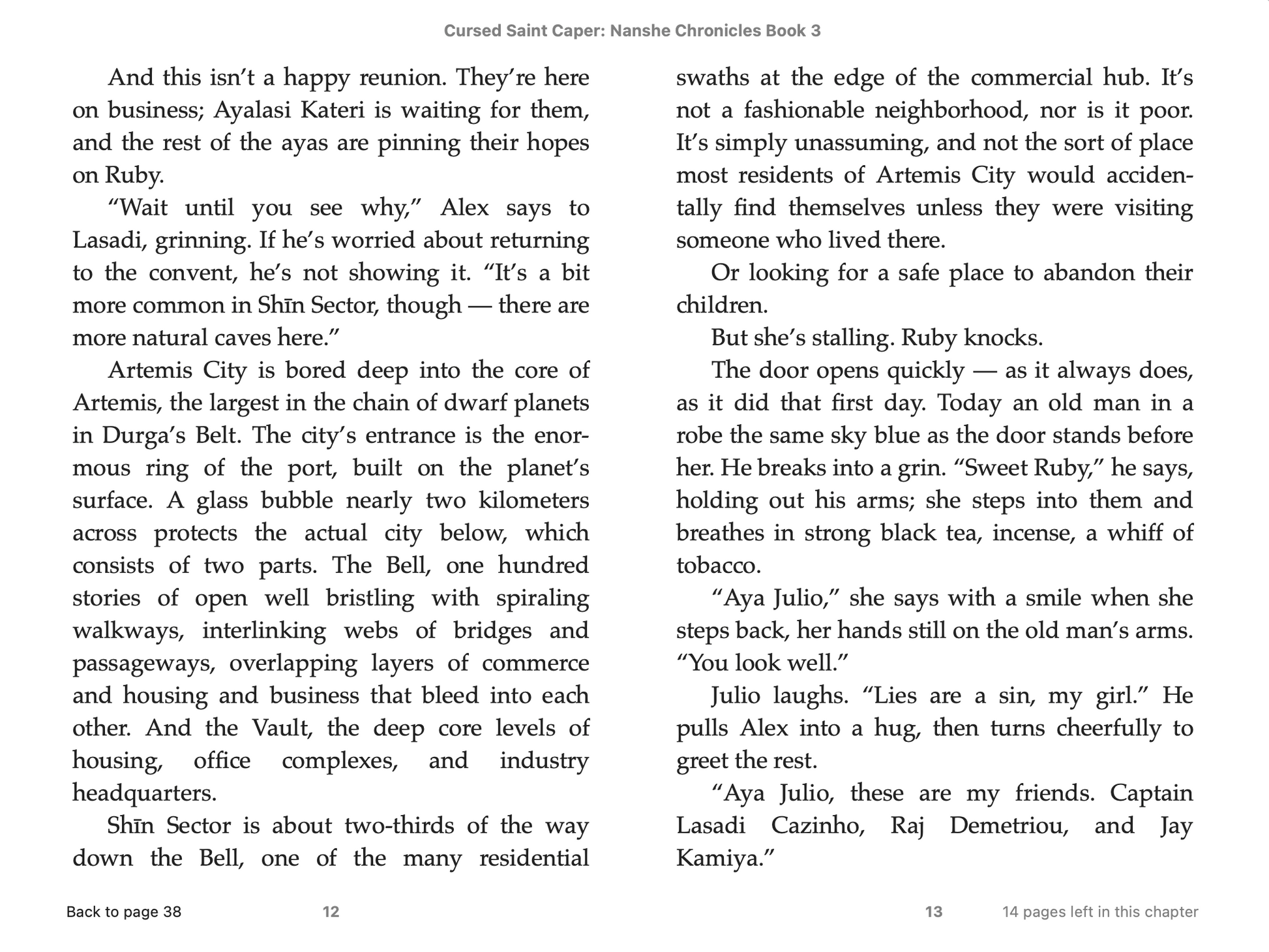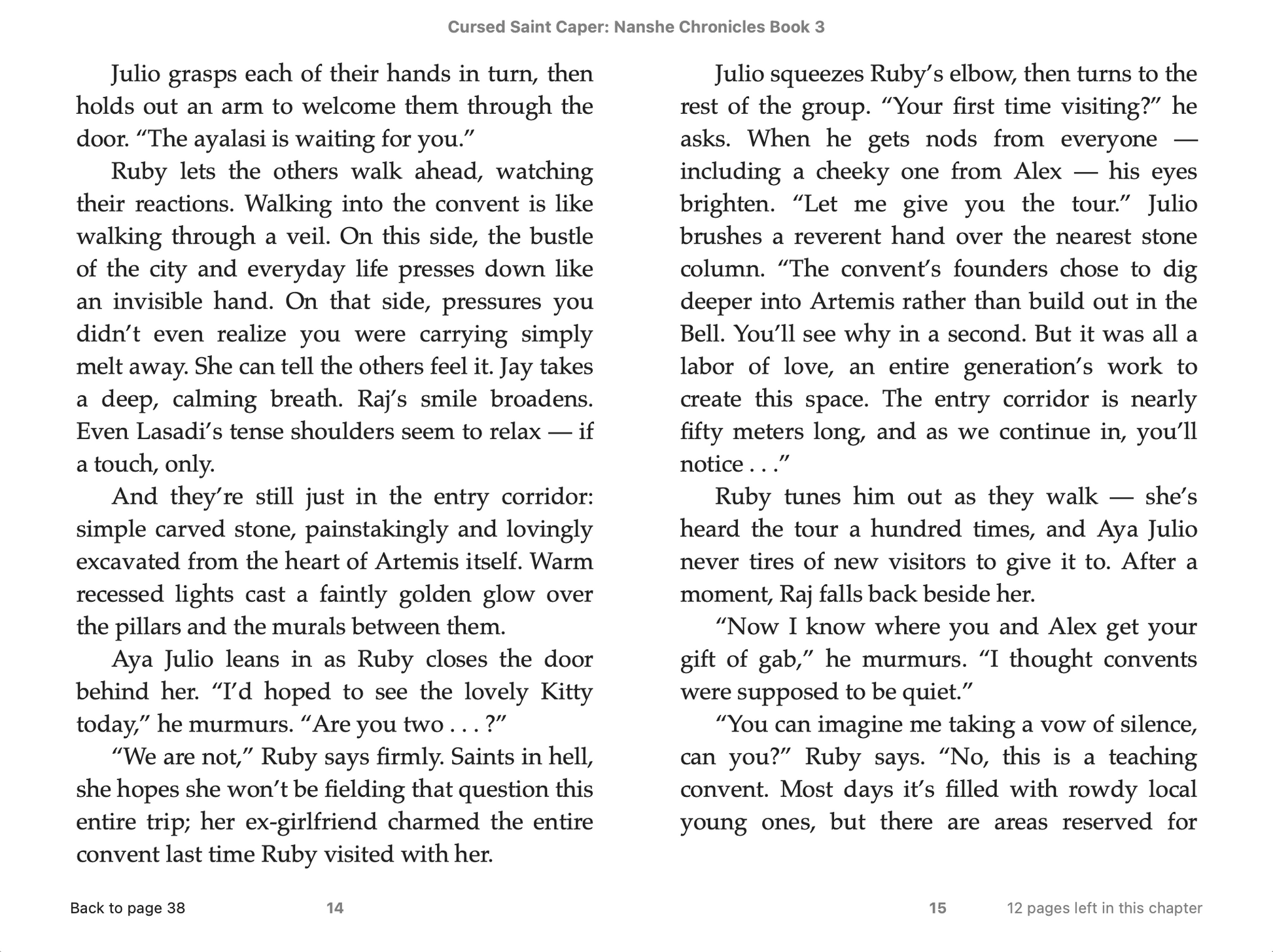 Cursed Saint Caper is the third book in the Nanshe Chronicles, a series of fast-paced sci-fi capers full of lovable misfits, non-stop action, and just plain fun. Perfect for fans of Cowboy Bebop, Firefly, and Leverage.